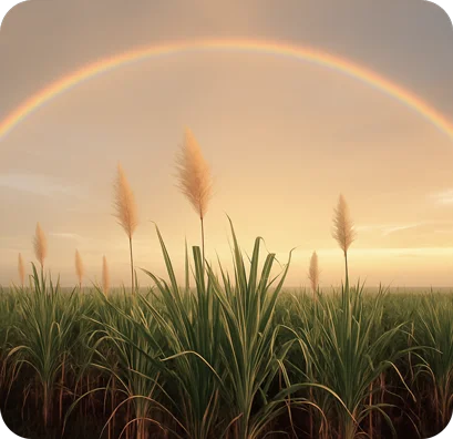 En ese instante, los cielos se abrieron y detrás de un gran arcoíris comenzaron a caer flores de caña como plumas de ángeles. Al tocar la tierra, se transformaron en el cañaveral más hermoso y abundante de la región.”