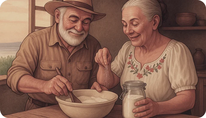 Cuenta la historia que hace cien años, en el día más largo del año, Anselmo y Clara Elena —una pareja de abuelos— prepararon un postre como ofrenda a San Juan, pidiendo felicidad y abundancia para toda su comunidad.